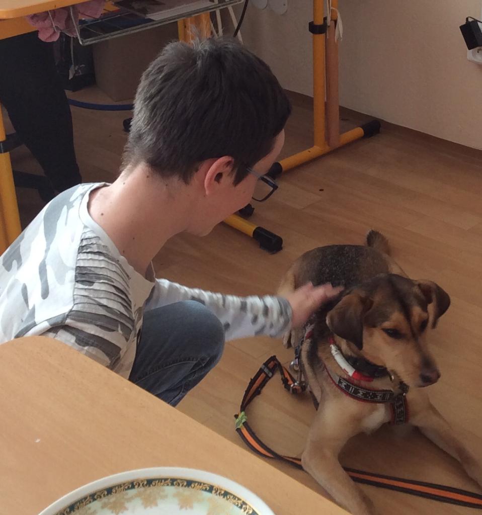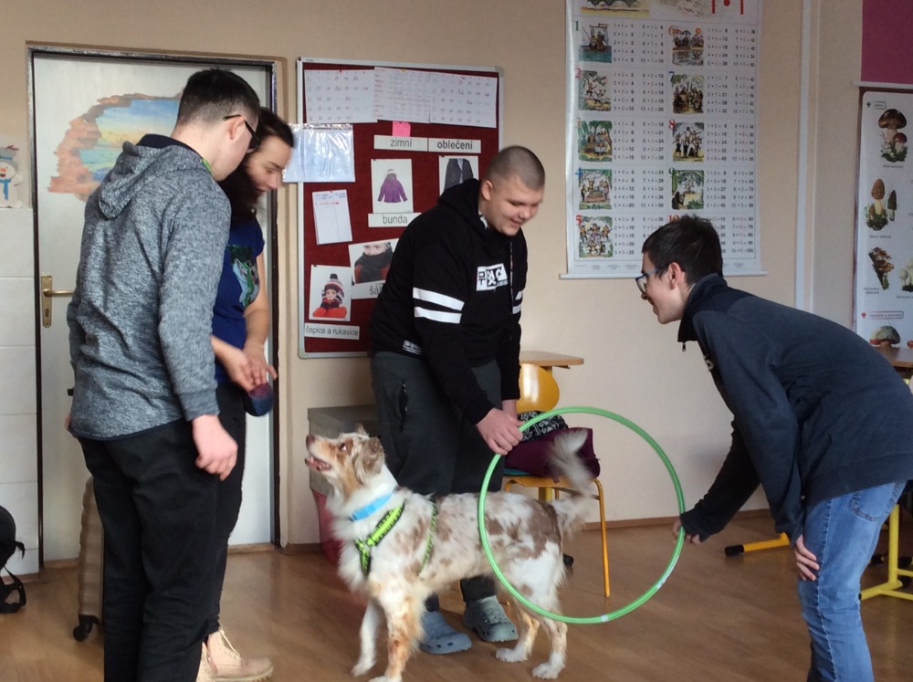 I letos k nám bude chodit Blanka a budeme mít hodiny canisterapie. Všichni žáci se těší, až budou pejskovi dávat povely, hladit ho, schovávat mu po třídě granule, hrát si s ním. Slečna lektorka nás mile překvapila, přivedla pejsky dva. Dan, Honza a Vít si hodinu řádně užili, Filípek si teprve zvyká.