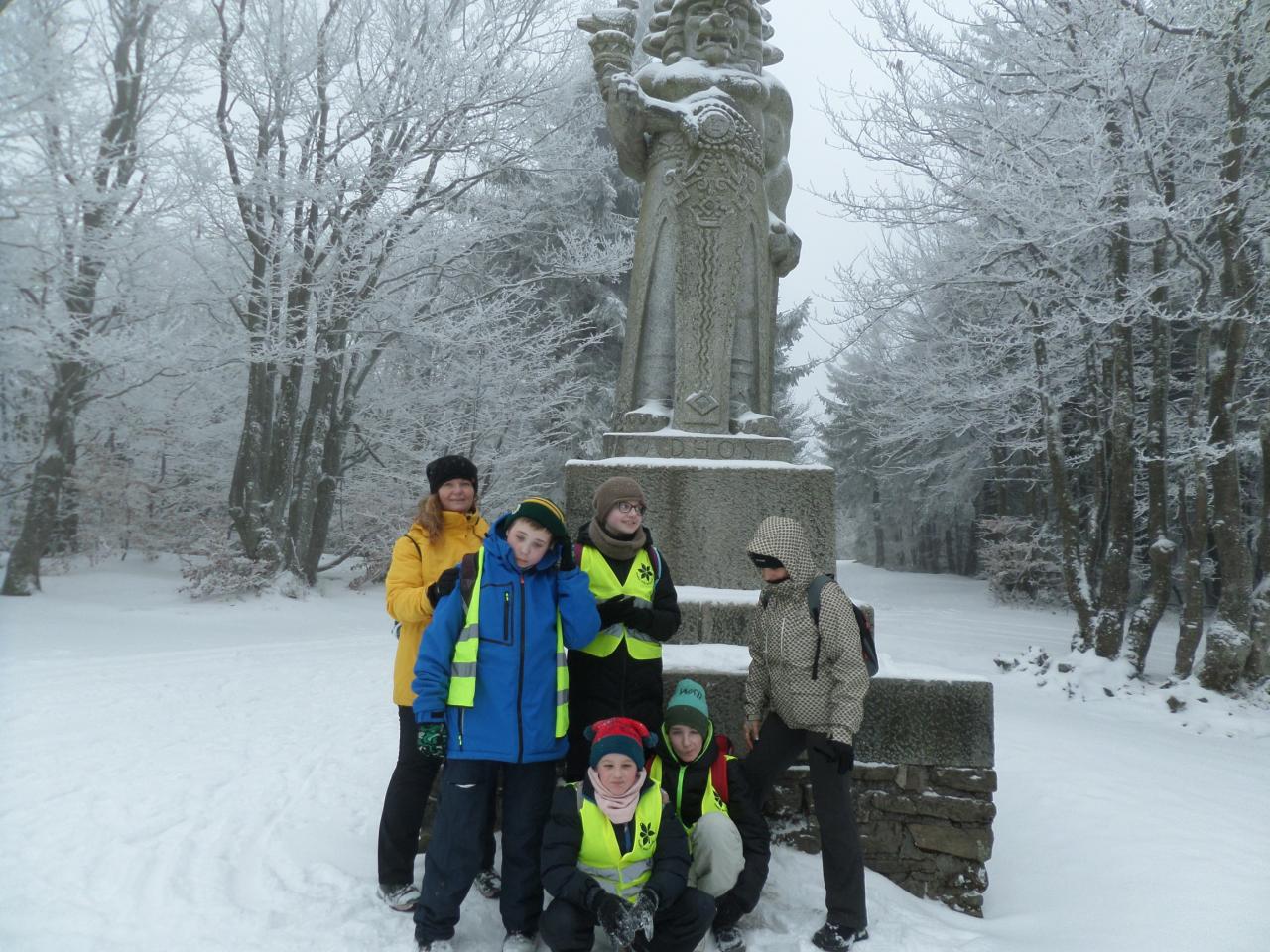 Výlet autobusem a procházka zasněženou krajinou k soše Radegast se nám všem moc líbila. Mráz, jinovatka na stromech sníh a led…prostě zima všemi smysly. A odměna? Červené, usměvavé tvářičky žáčků a horké kakao!