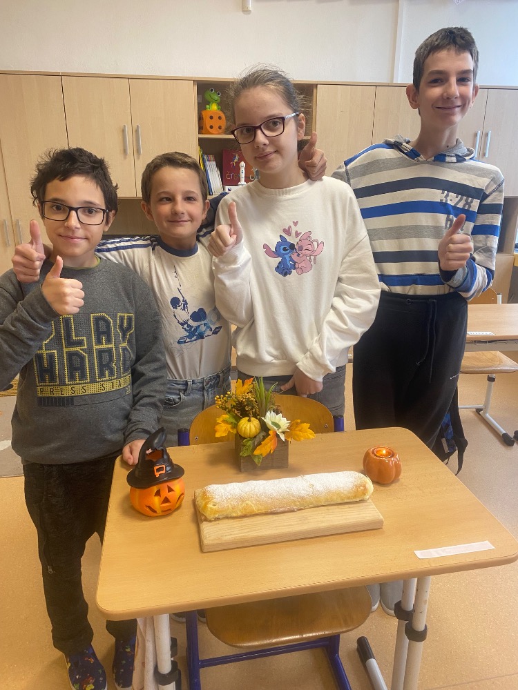Nejdřív jsme posbírali na pozemku školy jablka. Pak jsme se vrhli na přípravu. Všichni žáci byli moc šikovní a zavládla u nás ve třídě příjemná podzimní atmosféra.